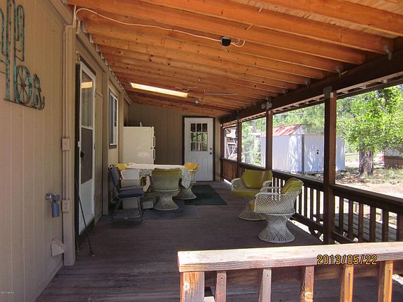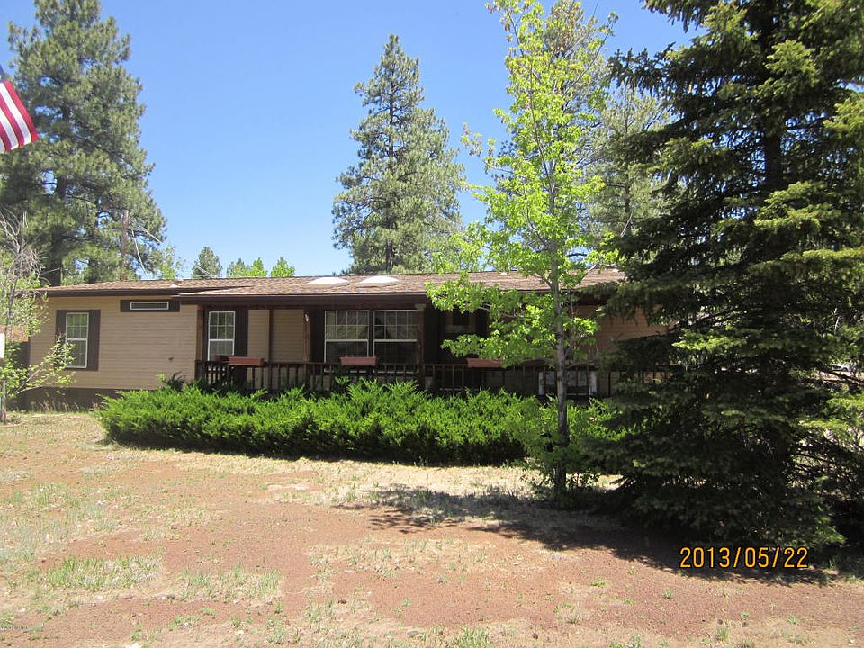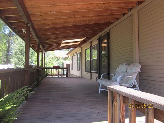 Very well kept Palm Harbor home 1991 located on a large corner lot with plenty of Ponderosa Pines and lots of parking on concrete drive way. A wrap covered deck. The home has a stove located on deck and back of home for out door cooking. Energy efficient windows. The interior has been freshly painted. In 2011 had all new and duck work under the home. There is a formal living room and dining room as well as a family room. A split floor plan with three bedrooms and two baths(no tubs) only shower units. This home includes a 500 propane tank.