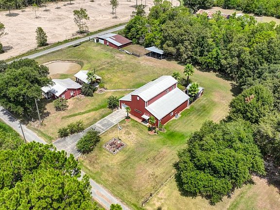Welcome to your rustic retreat! This stunning Barndominium nestled on 1.3 acres of scenic land offers the perfect blend of country charm and modern amenities. Boasting 2 bedrooms and 2 full baths, this unique home features captivating hardwood floors, complemented by beamed ceilings that exude warmth and character throughout. Step into the heart of the home, where granite countertops adorn the kitchen, creating a perfect space for culinary adventures. unique vanities in the bathrooms add a touch of vintage elegance, enhancing the overall ambiance. The outdoor half bath provides convenience, while the staired and fully floored 28 x 50 attic offers ample storage space and an option for additional living. Park your vehicles with ease in the 2-car tandem garage. Unwind on the covered patio, immersing yourself in the tranquility of nature. With a pond nearby, this property offers a peaceful escape from the hustle and bustle of everyday life. Guests will feel right at home in the charming guest house, complete with a cozy living area, kitchenette, bedroom, and bath. With approximately 650 square feet of living space, it's the perfect retreat for visitors, extended family members or possible rental. The additional sunroom/Tv room apart from home offers a great place to watch games on the weekends while BBQing outside or enjoying the fire pit. The property has multiple sheds and covered areas for additional storage or workshop needs. Don't miss out on the opportunity to own this one-of-a-kind property, where modern comforts meet rural tranquility. Come experience the charm and versatility of this Barndominium - schedule your showing today!