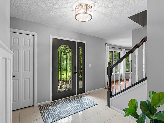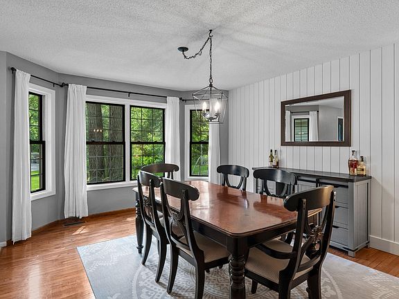 Welcome to this beautiful north Andover home tucked away in a cul-de-sac surrounded by nature on 2.5 acres! This 4 bed, 4 bath 2-story has been lovingly maintained & updated including brand new carpet in all bedrooms & upstairs, upper level full bath with marble vanity & flooring, water heater, HE furnace & A/C. As you enter, you're greeted by a gorgeous decorative etched glass front door & spacious foyer. The main level is perfect for entertaining with a formal dining room, open concept kitchen, cozy living room with gas fireplace, 1/2 bath, access to the deck, plus laundry. The kitchen features a custom island, granite counters & SS appliances! Gleaming hardwood flooring in DR, KI & FR. Lush greenery & privacy from every angle! Upper level features 3 BRs, including the huge primary suite complete with walk-in closet & full bath with soaking tub & separate shower. Each BR is very spacious with generously sized closets! Bring the entertaining downstairs in the family room with wood burning fireplace, 4th bed with private 3/4 bath & storage. More of an outdoor person? You will love this yard! The large deck offers 2 access points including a gate so pets & kids stay within the fenced area. Beyond, you'll enjoy plenty of greenspace complete with a firepit, raised garden beds with trellis & storage shed! Zoned to allow chickens since it's on private well & septic (compliant!). Top-rated Andover School District. So much to love here!
