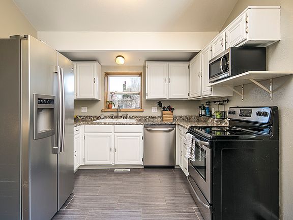 Super Cute Tri-Level with an awesome open floor plan. Updated kitchen with stainless steel appliances and white cabinets. Trendy tile in dining room and kitchen. Hardwood floors throughout living room and 2 bedrooms. Huge living room with vaulted ceilings and tons of natural light. Lower level family room with wood burning fireplace. Large master bedroom with walk-in closet. Updated baths with custom tile and newer vanities. 3 bedrooms up and 1 large bedroom on the lower level. Vaulted ceilings and tons of natural light. Fresh interior paint. New carpet and new furnace. Storage shed and huge yard ready for your finishing touches.