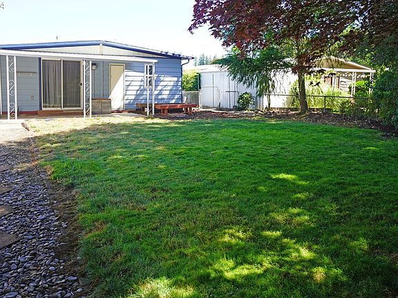 Back on market - no fault of home. LOCATION! LOCATION! LOCATION! This home has one of the most desirable yards you will ever find!!! Fully fenced huge backyard with giant garden area that borders a green space for a beautiful view! 2 relaxing covered concrete patios! ENORMOUS 20x10 2 room shop with storage, workbench & lighting! Expensive rubber roof. Newer heat pump a/c. Vinyl windows. Taped & textured walls & rounded corners. Laminate hardwood flooring. New water heater in 2022. Large living room with 3 view windows. Kitchen has newer refrigerator, range, dishwasher & oven. Pantry + LOTS of cabinet space. Eating bar. Master bedroom has slider to backyard view patio & attached bathroom. 2nd bathroom has updated flooring, cabinet, sink, toilet, light fixture & mirror. EZ entry step in shower. Good sized 2nd bedroom. Utility room has a double sink, washer & dryer that stay & lots of storage. Home could use a few cosmetic updates but the expensive things have already been done. Extra long 3 car carport. The most beautiful 55+ park in the area with swimming pool, walking paths, gym, recreation facilities & more! This home is pit set where it is level with the ground - no steps!!!