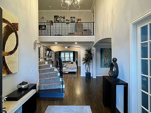 This house has it all; award-winning 5 bed/4.5 bath/3 car garage Trinity plan by Southern Homes. Located in Sunset Hills, this house is located next to plenty of shopping and amenities. Beautiful stucco home that features 4500+ sq ft, with high ceilings, huge study, beautiful open kitchen w/large island, all high-end Frigidaire Gallery appliance: 5 burner stove top, double ovens, and side by side fridge/freezer units, butlers pantry w/wine fridge and walk-in pantry. A mother-in-law suite is downstairs with its own bathroom, desk area and closet, Master suite features tray ceiling, desk area upscale bathroom and huge walk-in closet. Upstairs you’ll find huge game room, media room and two other bedrooms with walk-in closets and bathrooms. Plenty of access to attic space for additional storage behind one room. Outdoors the backyard boasts an extended A-frame COVERED patio, w/fireplace, outdoor kitchen, pergola extension and be the first to enjoy and create memories in your NEW heated pool with spa (completed Mar 22’). Beautiful landscaping throughout, comes with sprinkler system and landscape lighting all overlooking neighborhood pond and fountain. All upgrades included: Family Safe storm shelter under staircase (fits 4-6 people), in kitchen all high-end Frigidaire Gallery Fridge/all Freezer, water filtration system, under cabinet lighting, exotic granite, study w/built in desk/bookcases, upgraded media room and game room (bar and shelving), real hardwood floors, blinds throughout, whole house water softener, UV germ A/C, SMART home/LED features and security camera system! Prewired for security and sound (security cameras negotiable).