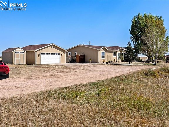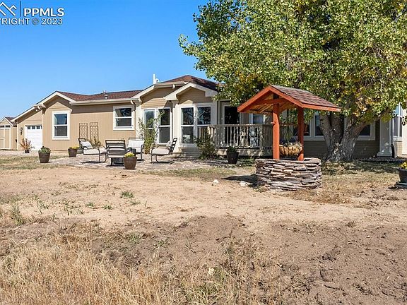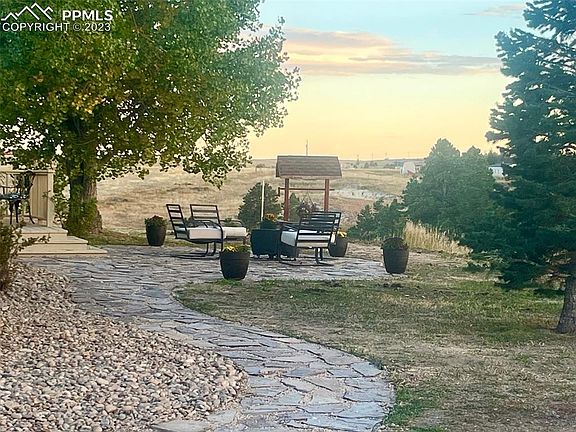 Seeking peace & tranquility? You have found it in east Black Forest close to many trails & open spaces! This completely remodeled 3 bed, 2 bath home sits on a cul-de-sac with over 7 acres of beautiful, usable land & is zoned for horses. Take in the breath-taking landscape with mature trees, large flagstone front patio & more. The home itself has had an extensive remodel to include new paint inside & out, all new windows & sliding door, new LVP flooring in the main area, new carpet in all 3 bedrooms & custom tile in the bathrooms. The open floorplan includes an updated kitchen with large island for gatherings, new appliances & granite counters. The kitchen is open to the cozy living room with wood burning fireplace & walk out to the large back deck. You will love soaking up the sun in the adjoining flex room with floor to ceiling new windows that flood the home with natural light. The views out of every window are beautiful enough to be artwork on the wall. The primary bath has new cabinets, light fixtures & faucets as well as a stunning, large custom shower and stand-alone slipper tub sitting on custom tile, facing the peaceful view of the landscape. Both the living room & primary bedroom have access to the large deck. The guest bath has also been completely remodeled with custom tile & all new fixtures. A surprise in the laundry room includes a convenient dog wash station. Relax on the large back deck with a fully fenced in dog area & expansive, uninterrupted views of the mostly fenced meadow with seasonal pond & chicken coop. This home is not just beautiful on the surface. You will also relax knowing you have new septic lines, 2 new hot water heaters, new a/c, new light fixtures & more. The oversized 2 car garage is big enough for a workshop as well with room for your toys in the storage shed adjacent. Need more? Plenty of space & great locations on the lot for building whatever you need. Make this beauty yours today! Please note-3 pics have been virtually staged.