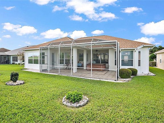 EXCELLENT SAN MARCO LOCATED ON THE 16TH TEE BOX IN STONECREST, A 55+ GATED GOLF COURSE COMMUNITY WITH LOTS OF AMENITIES. THIS HOME FEATURES 10' CEILLINGS, TILE FLOORING THROUGHOUT. KITCHEN HAS 42" CABINETS, LARGE PANTRY, CENTER ISLAND & EAT-IN AREA. MASTER BEDROOM HAS HIS & HER CLOSETS, LARGE MASTER BATH WITH GARDEN TUB & SHOWER, SEPARATE HIS & HER SINKS AND CABINETS, SLIDING DOORS OUT TO TILED EXTENDED LANAI WITH BIRD CAGE. EXTRA SPACE IN HALLWAY BETWEEN 2ND & 3RD BEDROOMS CAN BE USED AS OFFICE SPACE. CEILING FANS IN EVERY ROOM. AIR FILTRATION SYSTEM ADDED TO A/C, INSIDE LAUNDRY ROOM WITH STORAGE AREA. EXTENDED 2 CAR GARAGE WITH SCREEN, STORAGE SHELFS AND CABINETS THROUGHOUT & GOLF CART GARAGE. WATER SOFTNER IS CONVEYED AS IS BY SELLER, PAINTED DRIVEWAY. EXTENDED LANAI WITH BIRDCAGE. HOT TUB IS CONVEYED AS IS BY SELLER, NEW ROOF 11/2017. SPECIAL EXTERIOR COATING ON STUCCO WITH TEN YEAR LABOR WARRANTY. HOME HAS A BROWARD FACTORY WARRANTY ON MOST APPLIANCES AND IS TRANSFERRABLE. EASY ACCESS TO THE VILLAGES AND SHOPPING.