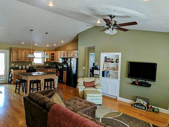Custom built ranch home with so much to offer!!! Located just minutes to Watertown, 15 minutes to Fort Drum, and close to Lake Ontario. Come see this nearly new home with gorgeous hardwood floors & an open floor plan. The master bedroom has a walk-in closet, master bath, and a walk-out door onto the covered back deck. The deck extends to the above ground pool, the covered area allows to you grill, relax, & enjoy in all types of weather. There are two large bedrooms with huge closets & a full bath. Owners have spared no expense finishing the basement into a rec room that adds 600 sq ft of living space. Endless possibilities including extra bedrooms, family room, playroom and more. Tons of storage & public water. Call today!!!