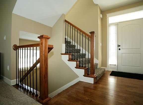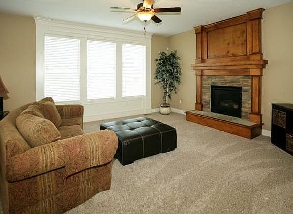 Beautiful Craftsman style plan offers volumes of open space yet a warm & comfortable feel. Living rm floor to ceiling windows bring the outside in, stacked stone frplc w/dark wood mantle & new carpet. Kitchen is deeper w/more cabinet & counter space, rich dark woods both floor, cabinets & island. Hardwood from entry through kitchen. Incoming light flows in from windows behind both up & down staircase show off wrought iron & brighten entryway. Master suite & bath like a luxury hotel. Bedroom level laundry room.