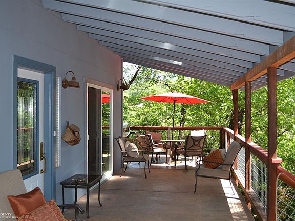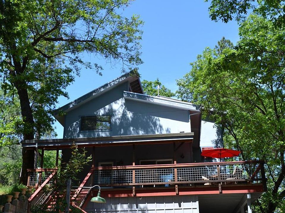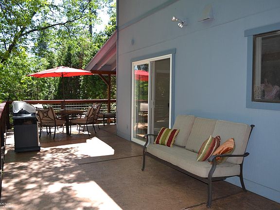 Complete privacy, peaceful and serene. This beautifully treed upslope property offers local views with Wolf Creek running through the bottom of the property where it's level and park like. Room for large family gatherings by the water and a place to park your RV. The home has much to offer including its bold architecture and so much character. A large concrete patio area was designed for entertaining with room for barbecuing, lounging and dining. Slate floors in the family room, kitchen and dining area feature radiant heat. The remodeled kitchen is well designed and you will love the unique and functional island! A bedroom, bath and laundry room complete the main level. Upstairs is a sizeable bonus room, bath, master bedroom with loft and delightfully remodeled master bathroom. Need a second unit? The lower level features a nice living space, kitchen, bedroom, bath and a private yard with a patio area. There is a storage room on the lower level and two primitive outbuildings.