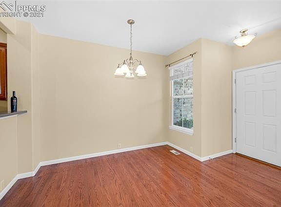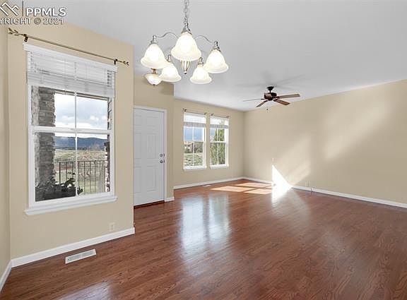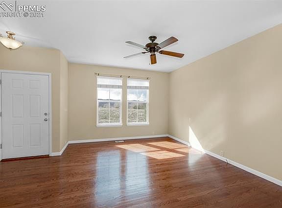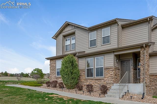 Delightful and sunny 3 bedroom, 2.5 bath townhome with a 2 attached car garage in a very desirable location in Monument* MOUNTAIN VIEWS from many areas of the home!!!*Glowing wood floors throughout the main level* Corian counters in the spacious kitchen* Upgraded cabinets* Kitchen pantry* NEW carpet and paint* Stainless steel appliances * Double door entry to the Master bedroom that captures the fantastic mountain views and sunsets* Walk-in closet in Master bedroom and adjoining bath with double vanity and tub/shower* Full bath services the other two bedrooms* Ceiling fans in each bedroom*Generous sized laundry room upstairs* Covered front porch* Close to guest parking* Open, bright and comfortable home* Easy commute to Denver, Castle Rock and Colorado Springs* Near schools and shopping* MUST SEE... IT WON'T LAST LONG!!!!!