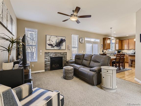 This single family detached home has over 2300 finished sq ft and is a unique gem nestled in the peaceful neighborhood of Senderos Creek. Check out what’s new in 2022: Della Terra Quartz Kitchen Countertops, Ruvati 16 Gauge Undermount Kitchen Sink with Touch Control Faucet, Kitchen Backsplash, Remote Under Cabinet Lighting, LG Microwave, Lennox Merit Comfort 4 Ton Furnace, main floor Berber carpeting and Flexmount Garage Storage Racks. The roof was replaced in 2021 with Premium Asphalt Shingle and a new Defender Water Heater was installed in 2020. The open concept main floor is light and bright with a spacious kitchen offering plenty of 42” cabinets, newer LG Stainless Steel appliances including gas cook-top, island, pantry, breakfast nook and family room with gas fireplace. Through a newer PHR glass slider with between-the-glass blinds is a 12x12 patio with an remote Retractable Awning for your sheltered enjoyment and privacy. Upstairs is a sunny loft along with a roomy primary bedroom/bath with coffered ceiling, walk-in closet and large soaking tub. The 2 secondary bedrooms feature large closets. The garden level basement was professionally finished in 2019 and includes a great room with a convenient ¼ bath. With updated fixtures throughout, this home is also covered under a 2-10 Supreme Home Buyer’s Warranty until 11/2023. HOA takes care of common area maintenance including shoveling right up to your front door! This is a unique patio home in that the owner owns the house/structure/deck and land beneath the house and the HOA owns and maintains the surrounding grounds. Legal description of this property is a condo but it is in fact unattached. Enjoy the NEW private community Swimming Pools, Hot Tub, Clubhouse, Park & Playground less than a block away. Conveniently located to everything! Hop on your bike and take the Cherry Creek Trail to the farmers market and beyond…Close to downtown Parker with easy access to Hospital, Dining, Shopping, RTD, I25 and E470.