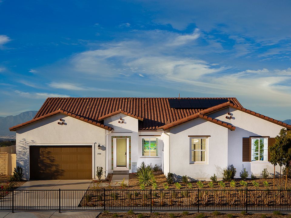 Ranch style living at it finest. This beautiful home features Della Terra quartz kitchen countertops with full height linear mosaic tile splash, stainless GE kitchen appliances, Kohler faucets, Emtek keyless entry, and NEST thermostat. The master bath features upgraded quartz countertops and vanity mosaic tile splash. Speak with our onsite sales team for details on the upgraded hard surface flooring and carpet throughout. Lounge with family and friends in your expansive California room to enjoy indoor/outdoor lifestyle. Tramonte is the only collection of new estate homes for sale in Upper Riverside, giving a mother all the space she needs for a growing family. With at least 1/3 acres of land, these one- and two-story homes offer sweeping views of the surrounding area and private guest quarters and multi-generational living options to suit any family's needs. With quick move-in opportunities and a wide selection of options, these homes are truly the best package of customization, value and affordability. Centrally located close to the La Sierra Metrolink station, the 15 and 91 freeway, you can be connected to Los Angeles and Orange County like never before. Don't compromise with homes in Anaheim, get everything you need in Riverside today! A fantastic mix of opportunity and convenience, Tramonte is the perfect place to call home. The Sales Gallery is open daily, call today or stop by to tour our model homes.