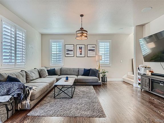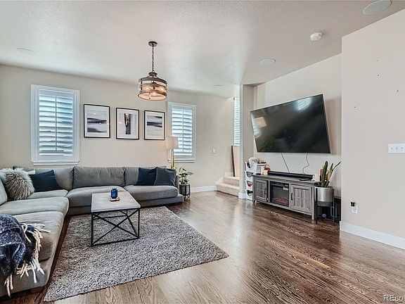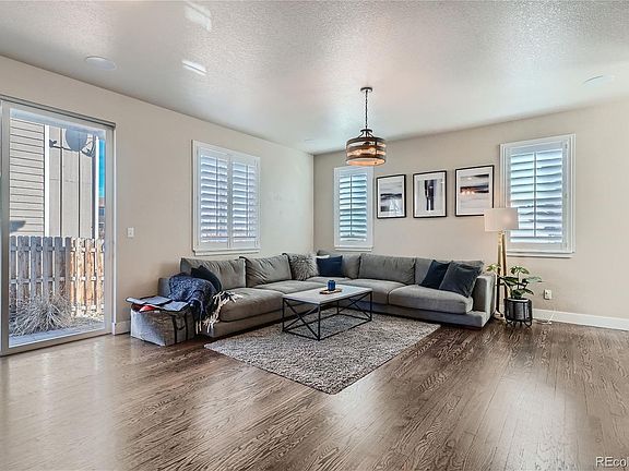 Welcome to this stunning home boasting an inviting, open floor plan & abundant natural light. Conveniently located near dining, shopping, & with easy access to DTC, this home offers the perfect blend of luxury & practicality. Gleaming wood floors grace the main level, complemented by 9-foot ceilings that enhance the spaciousness. The upgraded kitchen features 42'' cabinets, stainless steel appliances, & elegant granite counters, while smart home technology, including built in theatre speaker, a wifi thermostat and Nest doorbell, ensures modern convenience & security. You can entertain in style with the finished basement, complete with wet bar, quartz countertops, & a full bathroom! Ideal for guests or additional living space. Upstairs, discover the oversized laundry room equipped with HE Samsung washer & dryer, adding convenience to daily chores. Retreat to the sprawling master suite, boasting an expansive walk-in closet, dual vanities, & an oversized shower for a touch of luxury. Additional bedrooms offer ample closet space & share a large bathroom, perfect for accommodating everyone. Enjoy outdoor living at its finest with the oversized professionally landscaped patio, adjacent to a green belt! Thus, providing a serene backdrop for relaxation & entertaining. The community amenities, including a park, pool, hot tub, & clubhouse, offering endless opportunities for recreation & fun! To complete your new gorgeous home there is an oversized 2-car garage providing ample space for all your toys! This home truly offers the perfect combination of comfort, convenience, and luxury living. Don't miss the opportunity to make it yours!