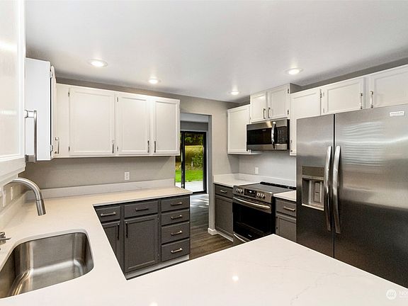 Back on Market due to Buyer Financing Issues! 4 bd/2 bath newly updated home on a quiet street centrally located to shopping, dining & nearby parks. As you enter this single level home, you will be wowed with how spacious this floor plan is. Main living area & dining rm is open & cozy w/ wood stove. Updated cheery kitchen boasts stylish quartz counters, bar seating, storage/pantry, new SS appliances incl. range w/steam clean & air fryer! Off the kitchen is a 2nd living space. Mud rm/laundry has access to the oversized 3 car garage w/ storage. HUGE main bdrm opens to patio w/ full bath & large walk-in closet. Large fenced private back yard w/ mature trees & stamped concrete patio space for outdoor living. 10 yr old roof. Home warranty incl.