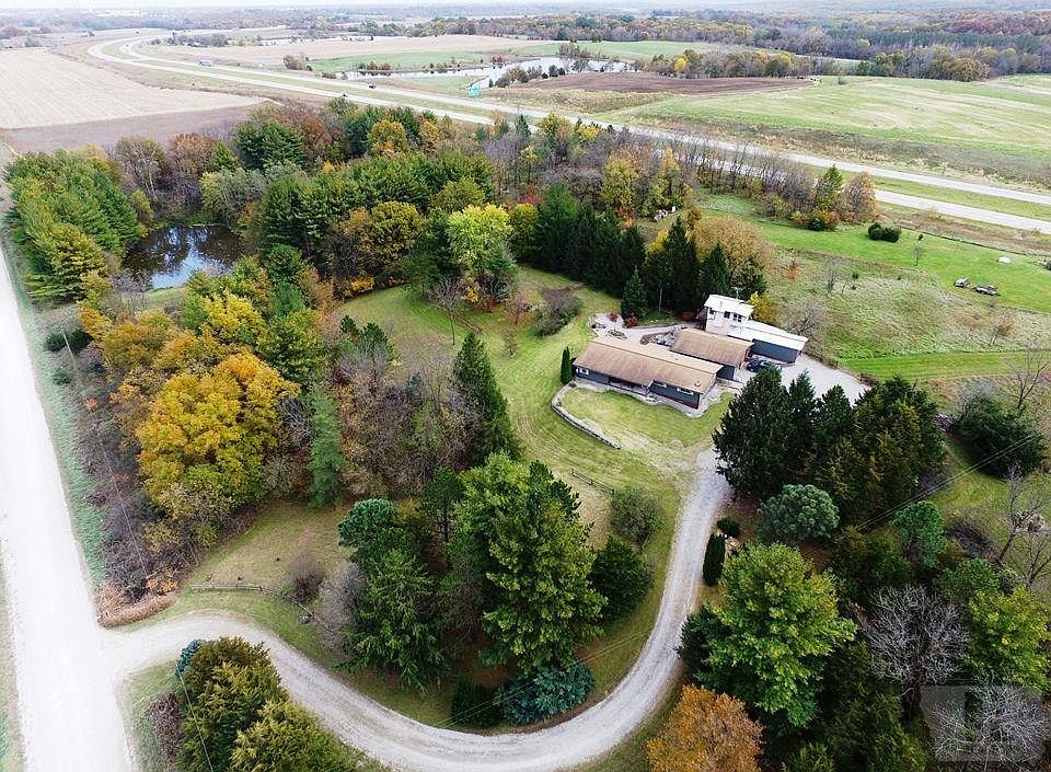 This meticulously maintained acreage (7.23 acres m/l) located just off the Hwy 34 west bypass has so much to offer! You will not want to step away from the spacious living room with a corner gas fireplace, built-ins, office area & views of the wildlife & trees from every vantage point. Kitchen opens to the living room & dining room starting with the eat-at bar which includes a sink & dishwasher together w/all other appliances, ample counterspace & pantry. Separate large dining area with its own picture window--providing an area for your other dining furniture. Three hallway bedrooms, spacious closets, ceiling fans, & new carpet. Hallway bath is a tub/shower combination & tile floor. Additional 3/4 bath and a mudroom entry complete the main level. Lower level w/family room complete w/wood stove, 3/4 bath, laundry, add'l office, a 15'x15' room, & storage. Two-car garage/workshop/& a bonus 2nd story cabin w/fantastic views. Pond, trees, landscaping & a rear patio oasis. Much more!