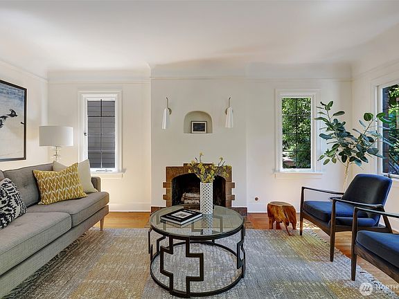 Light-filled Tudor on a quiet street-to-street lot in the heart of Madrona. A gracious entry courtyard, mature landscaping, and spacious backyard patio offer a serene retreat. Original charm includes leaded-glass windows, an artisan tilework fireplace, and claw-foot tub, paired with modern updates like new kitchen appliances, fresh paint and carpet, and a large deck off the kitchen/family room. The primary suite features a large walk-in closet, picture windows, and refreshed bath. The lower level provides a rec room with kitchenette, office nook, full bath, and a fourth bedroom opening to the garden. Close to the cafés and boutiques of Madrona and the parks and shores of Lake Washington.