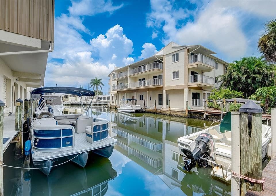One or more photo(s) has been virtually staged. Own your piece of Florida Lifestyle! Sarabay Coves Condominiums is nestled between stately homes, and old Florida living. It represents a wonderful blend of nature, waterfront, and community for boat lovers! Don't miss your chance to call this rarely available unit your own. With 2 bedrooms and 2 bathrooms on 1080 SqFt it offers all the space you need to enjoy Florida Lifestyle at its best with amazing canal and bay views. With state-of-the-art amenities this condo offers everything you are looking for to live the perfect Florida lifestyle. The kitchen is conveniently connected to the living room. The master suite with an ensuite bathroom and a 2nd bedroom with a 2nd full bathroom are located to the left of the condo. Access your 2 private patios, one from the living room and guest room and the other from the primary suite. Enjoy amazing canal and bay views from your private patio. The community is a boater's paradise with all amenities you can wish for: community pool, club house and tennis courts just to name a few. The condo is conveniently located close to shopping, entertainment, restaurants and the beautiful Gulf beaches. Boat Slip Rental is also available for a nominal fee, and a quick few minutes' boat ride to the gulf. If you have a boat, this condo may be the perfect fit for you. Make this condo your own!