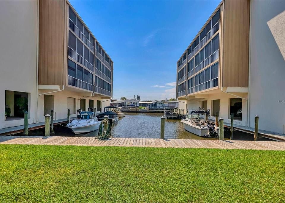 Turnkey Furnished unit — This 2-bedroom, 2 Bathroom Condo shows like a MODEL HOME! A Boater’s Dream on the Water! You won’t find a better value in Manatee or Sarasota County to dock your boat right outside your condo! Assigned dock space is available. — an incredible deal. This completely modernized waterfront condo offers direct access with no bridges to Sarasota Bay and the Intracoastal Waterway. The owner spared no expense in creating a stunning, move-in-ready home. The entire unit was fully remodeled down to the studs, featuring new plumbing and electric wiring, outlets, and lighting fixtures. The electrical panel was relocated which allowed for an expansive island—perfect for entertaining friends and family. The kitchen is a chef's dream, it features hardwood cabinets, quartzite countertops with a beautiful leathered finish, pull-out drawers, stylish wet bar, and top-of-the-line stainless steel appliances, oversized kitchen sink with commercial faucet. The spacious Master Bedroom suite includes a walk-in closet, and sliding glass doors leading to your private lanai with water views. The en-suite bathroom showcases a walk-in shower and modern finishes and floor to ceiling porcelain tile. The second bedroom is versatile, featuring a cabinet bed for use as both an office and a guest room. The hall bathroom boasts a sleek floor to ceiling porcelain tiled design and a modern bathtub. Enjoy the outdoors from your 35-foot-long lanai which features tinted vinyl panels to block out the rain and wind. This unit has tons interior storage with additional storage on the lanai and a first floor storage locker. Additional updates include a new water heater (installed in 2021) and HVAC system (installed in 2019). Elegant 24" x 48" high-end porcelain tile flows throughout the home. Laundry rooms are conveniently located on every floor. Elevators make it easy to access the unit and garage parking is available for an extra monthly fee. and there is ample free outdoor parking. Located 3 miles from to Sarasota International Airport, and minutes from University Town center Mall, Restaurants, and our Beautiful Florida's beaches . Located on a short canal ride straight to the wide-open waters of Sarasota Bay — where you can see the Ringling Bridge as you approach! In just 10–15 minutes by boat, you’ll find some of Sarasota’s most popular waterfront dining spots, including Marina Jack’s, The Salty Dog, and Dry Dock. Headnorth to the crystal-clear waters of Jewfish Key for a perfect sandbar day, or continue on to Cortez for live music and fresh seafood at local favorites like The Swordfish Grill, Cortez Kitchen, or Star Fish Company. For the avid angler, this location provides unbeatable Gulf access—head north 10 minutes through New Pass, or south 15 minutes to Longboat Pass for a direct route to open waters. Sarabay Coves truly offers the most convenient, centralized boating access in Sarasota and Manatee Counties. The HOA fees include internet, cable, water, sewer, trash, pool, jacuzzi, clubhouse, tennis courts, building insurance, flood insurance, common area liability insurance, and professional management. Great Investment property! Rent 12 times a year 30 day minimum and pets are welcome. Sarabay Cove is truly a Hidden Gem waterfront Community! (Please note: photos of amenities were taken before storm damage; repairs to the pool, clubhouse, and tennis courts are currently in progress.