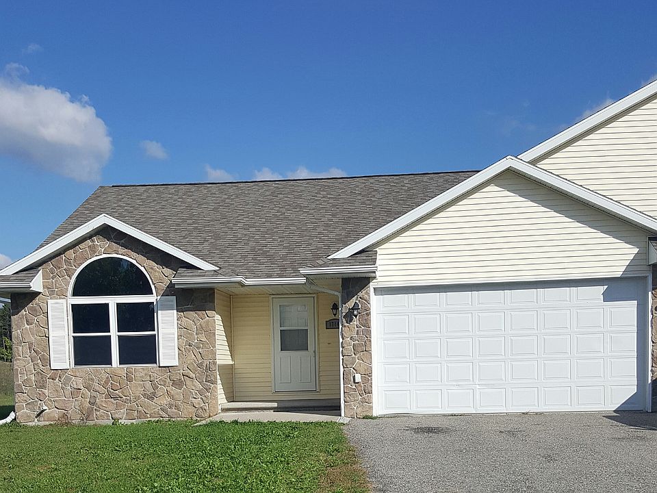 Newer 3 bedroom 2 full bath ranch style duplex with 2 car attached garage and full unfinished basement. Newer carpet fresh paint clean. Appliances included: refrig dishwasher stove/oven microwave. Washer dryer hook-ups. Tenant responsible for all utilities lawn care & snow removal. No Smokers this is a smoke free property. Call for a viewing! No smokers, No Cats, 1 dog negotible No past evictions.
