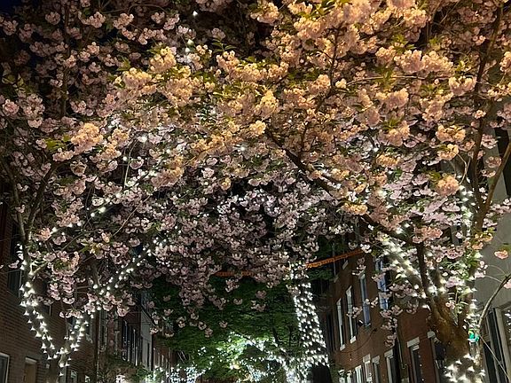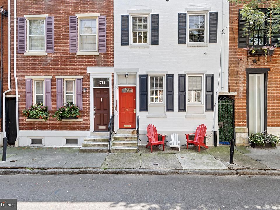 Call everyone's favorite Philadelphia street home- walking down Addison street, lit 365 days a year with white tree lights, truly never gets old- even for its residents! Quiet yet in the heart of it all and 3 blocks from Rittenhouse Square, with minimal traffic and no on-street parking- it is always easy to pull up in front of your home to load and unload a car full of groceries or children without worrying about blocking traffic. Multiple parking garages and lots in the neighborhood mean you have the choice to rent a spot if you prefer not to street park. This 3 bedroom 2 bathroom home was renovated in 2017 by the sellers in conjunction with Rabena Brothers/Malvern Development Group. The entry has an exterior light affixed to a Pennsylvania Keystone, a Liberty Bell hex tile floor, and the kitchen was custom designed with Sterling Kitchens to make the most use out of the vertical space with cabinets all the way to the ceiling. The lower blind-corner cabinets feature custom pull and slide drawers for easy access to all kitchen tools. Having the kitchen in the front allows the living room to look out the large back wall of widows into the private brick patio and both walls are wired for cable and electric allowing multiple setup options. Walk up the stairs to the 2nd floor foyer which has a coat closet, storage closet and access to both bedrooms and the bathroom. The smaller back bedroom or office has views of the rear gardens/patios, the old school blue tile bathroom has quirky Ben Franklin wallpaper, and the large front bedroom has a double closet and separate built-in featuring drawers, cabinets, display areas, a pull down desk by the window, and a large closet that used to house a Murphy bed. Up the stairs to the primary suite you will first notice the high pitched ceilings and full wall of built ins. Past the two closets enter the main section of the bedroom- the built ins provide plenty of room to display your treasures and the windows have a lovely skyline view at night of Center City. The primary bathroom is large- featuring a deep custom double vanity, large medicine cabinet mirrors for more storage, XL glass shower with rain head and *****full size stacked washer and dryer in your primary bathroom****. This means no lugging laundry to and from the basement when it is located in your bathroom! In the back of the bathroom is a makeup/vanity area next to the window (great natural light for doing makeup!) and an extra deep closet currently utilized for storing linens and long dresses/garments. The finished basement has high ceilings, two windows for light, and a large L shaped storage area- its impressive how much can fit in there! There is still plumbing access in the floor if you would like to add back in a half bathroom here. This home also has a semi-private alley to the right accessed via the patio or Addison Street where trash cans, toys, etc are stored for ease of pulling them out onto the block to play with, or trash on trash day. This house is Greenfield catchment and almost everything you need is within 3 blocks. The renovation was thoughtfully done to best utilize the space, and keep the character and history of the home with the built ins installed by the previous owners (of 40+ years!) while updating other areas. There are framed pieces of layers of wallpaper found during the renovations, and in the entryway are photos of the home from the 1960s as well as an Inquirer advertisement from the 1880s for the catering business that the original owner (1860-1920) ran out of the home. Become a part of this home's history!