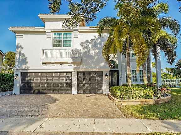 Best Lot in Madison Green! Located between the 1st & 18th holes, this 6-bed, 4-bath Minto-built home offers luxury & comfort. Gated community. The remodeled kitchen features soft-close cabinets, built-ins, high-end appliances, and an organized pantry. Formal living & dining rooms add elegance. The primary suite is a retreat with a sitting area, expansive built-in closet, and private 300+ sq. ft. balcony. The primary bath includes dual sinks for added comfort. Upstairs boasts engineered wood flooring and a media room for entertainment. New impact windows & doors (2024). Private suite w/ en-suite bath. Generator hardwired. New upstairs A/C. Privacy hedges & turf grass for a lush, low-maintenance yard. This move-in-ready home is a rare find in Madison Green—schedule your showing today!