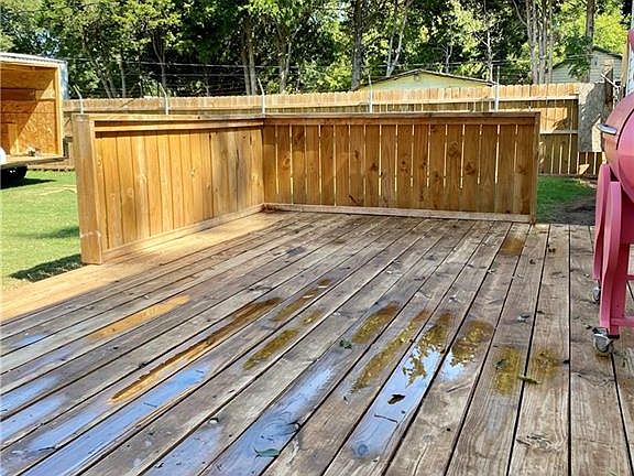 With a fresh new look, this home will satisfy your needs and desires with its open floor concept, and fresh new remodel throughout! Located within walking distance to Bill Wallace Elementary, Grand Elementary, and USAO, it is conveniently located close to all amenities and major streets for added convenience. This home features fresh new carpet throughout, remodeled kitchen, a master bedroom, on suite bathroom, walk-in shower, and walk-in closet! The windows are updated and feature double pane glass for efficiency. Outside, bask on your over sized front porch, or on your fresh new deck overlooking your fenced in backyard. Additional features include: carport, concrete driveway, and two story outbuilding with work area and electricity, and dog kennel! Schedule your viewing today. ***Need central heat and air? Seller is willing to negotiate it!***