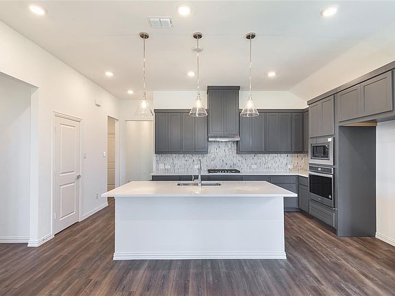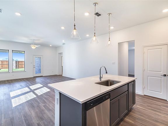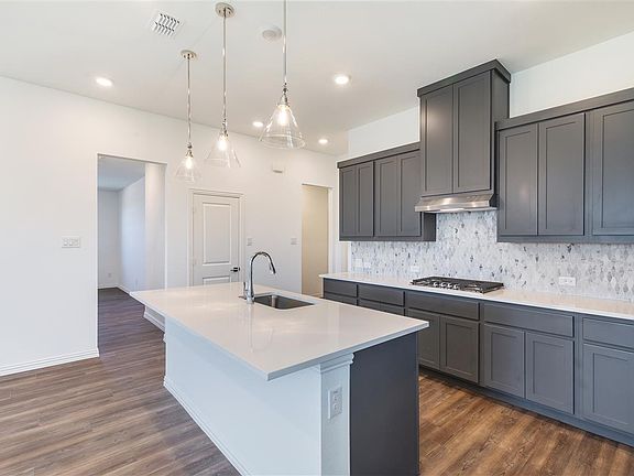 New one-story home plan by Ashton Woods offers the ideal home for growing families. Open foyer with expansive flex room may be used as a secluded study or formal dining room. Abundant countertop and storage space make up most of this chef-inspired kitchen with a center, eat-in bartop island, and walk-in storage pantry. The kitchen faces the open dining area and family room which all overlook the covered patio in the rear of this new home. Private primary suite with hall entry features dual vanities, spacious shower, linen closet, and ample walk-in closet. Two, secondary bedrooms each with their own closet are ideally separated by a playroom - perfect for the little ones! At the front of this new home resides a fourth bedroom ideal for guests of all ages. Centrally located utility room just off the 2-car garage. Upgrade to a 3-car garage if desired depending on selected homesite. Open and spacious with room for everyone, this new home plan by Ashton Woods is perfect for you and