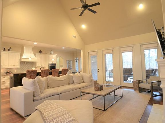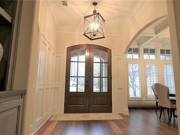 Absolutely gorgeous home in desirable Moore's Mill Golf Club. Welcoming foyer leads to lovely dining room with coffered ceiling and opens to beautiful great room. Great room has vaulted ceiling, gas log fireplace surrounded by beautiful built-ins. Kitchen is open to great room and has double oven and large island. Master plus 3 other bedrooms on main level. Huge bonus room and full bath upstairs. Home offers spacious laundry, custom drop zone, butler's pantry, and great storage. Outside living space has fenced backyard, covered patio with fireplace and cable outlet.