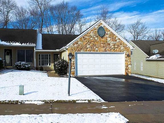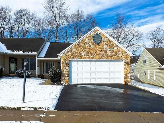 First Floor living - NO STEPS! Maintenance free living! Never mow or shovel again! 2 first floor brs, 2 first floor full bath, gas frplc in LR with Remote control & w/deck & steps to grade, Garage is heated, cooled & fully finished as it had been the model home, all appliances included! Covered front porch, excellent move in condition.