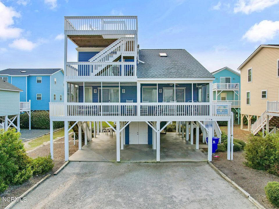 This is it! You've been wanting to be on the far EAST END of the Island! Here it is! Perfectly located this 3rd Row, well maintained Beach House is in a prime location close to Tubbs Inlet with Bay & Ocean Views! Big Families feel at ease in this Open Floorplan with wide open spaces in the 4 generous bedrooms, upper-level loft with wet bar, 2 baths, gracious living area with Vaulted Ceiling, Skylights & lots of sunshine. Updates include LVP/LVT flooring, new carpet upstairs, fresh exterior & interior paint, and more. The Hardi siding installed in 2005 along with hurricane shutters make it easy to maintain. You'll love the large front screened porch, upper-level balcony facing the ocean, upper deck off the loft and even the Roof Deck which all provide remarkable water views. You'll make tons of memories with loved ones at the beach while calming sea breezes flow on any of the outdoor areas. Relax on the ground floor with shady spaces that includes an outdoor shower, covered parking & expansive storage room. Location, Location, Location is right here 3rd Row & directly beside the Beach Access with just a few steps to the pristine oceanfront sands of Sunset Beach. Simply breathe a sigh of relief when you arrive at your very own Sunset Beach Island House and start living on Island time. Established Vacation Rental income history is a bonus, but you can keep it all to yourself if you'd like. Don't miss this opportunity