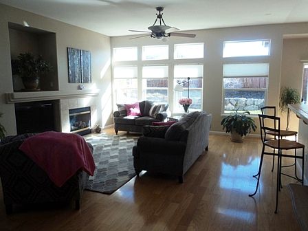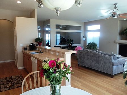 Beautiful single story home in Double Diamond. This home features 3 bedrooms, 2 bathrooms and a 3 car garage. Pride of ownership shows throughout and this home is in turn key condition. There are too many features to mention them all but some of the features include wood flooring, great room wired for surround sound, high ceilings, the up and down window shades and newer paint. Washer, dryer and refrigerator are included along with the mounted TV in the second bedroom. The backyard has a covered patio, lighting along the fence, gates on both sides of the home, a dog run and sheds for your storage. The garage attic is built out for storage and also has a fan.
