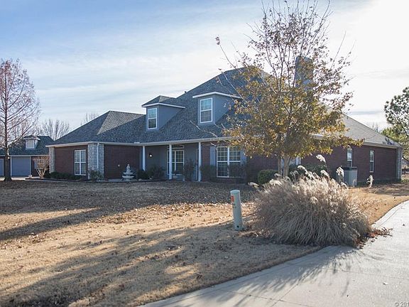 Incredible custom built hm w/sep mil quarters; det gar w/full bath & GOHD; large upstairs living all on peaceful acreage in exclusive Pecan Creek in Bixby.