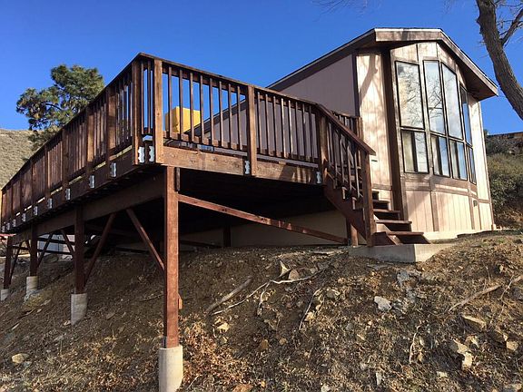 This cute single wide sits on a 1 acre INCREDIBLE VIEW LOT perfect for a custom home. Value is in the lot although the existing mfg home is very livable (just needs minor fix up). Well and septic already installed. Huge deck overlooks downtown Prescott, Frontier Village, Granite Mountain, Thumb Butte and the Prescott National Forest! Home features island kitchen, big living room with beamed ceiling plus great views from almost every window. Minor fix up includes some cabinet repair in kitchen and the bathroom needs new sink and cabinet. Other buildings include storage shed and well pump house. There is also a fenced pet enclosure. Ample uncovered parking. NO HOA so RV/trailer/boat prkg is OK. An incredible view lot plus a livable home --you won't find anything else like this in Prescott!
