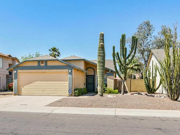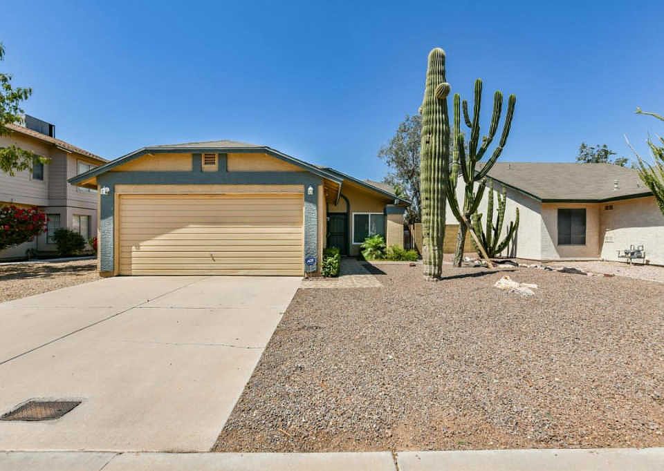 Remodeled 2 bedroom/2 bath with enclosed patio additional space. Galley Kitchen with granite counters, white cabinets, newer dishwasher, range & microwave. Newer AC unit, windows, blinds, screens, fans, tile, bathroom vanities & epoxy patio floors. Desert landscape front and back. No HOA! Clean and move in ready!