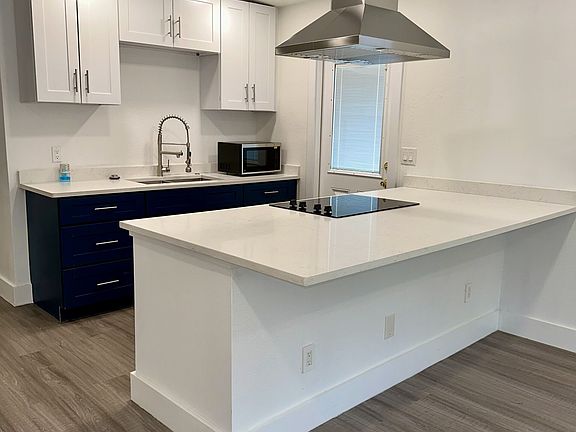 Large backyardSleek electric cooktopBeautiful range hoodPlenty of storage spaceBrand-new vinyl plank flooringBright kitchen