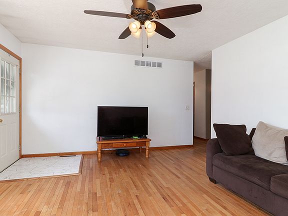 Beautiful hickory cabinets and all hardwood floors in living room, hall and bedrooms in this lovely three bedroom ranch. Full basement with most of the area finished gives you much more living space! Much of the main floor has been freshly painted, hall bath has been updated. All windows have been updated. Garage was just drywalled, insulated, a new window installed plus an attic fan in 2018. New dishwasher in 2022. Roof is less than 10 years old. Enjoy entertaining on your large maintenance free composite deck within a fully vinyl fenced yard. Two outside sheds stay for additional storage. This is a well maintained home!