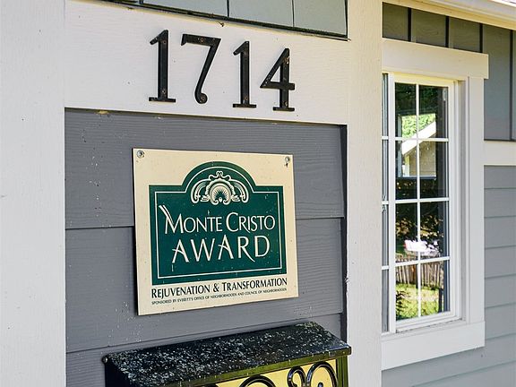 Welcome home to this charming North Everett Craftsman. This award winning Monte Cristo home invites you into a remodeled kitchen with beautiful quartz countertops, subway tile, a gas range and stainless steel appliances. The great room greets you w/ original hardwood flooring and a cozy gas fireplace. This home boasts 2 bedrooms, 2 bathrooms plus an office/den adjacent to the primary bedroom. The primary bedroom has a generous walk-in closet, full bathroom and french doors leading you out to the backyard. Don't miss the stunning original doors throughout the home. You will love to entertain in the private backyard w/ patio and deck, follow the walkway to your oversized one car garage plus a carport which is a huge bonus w/ downtown living.