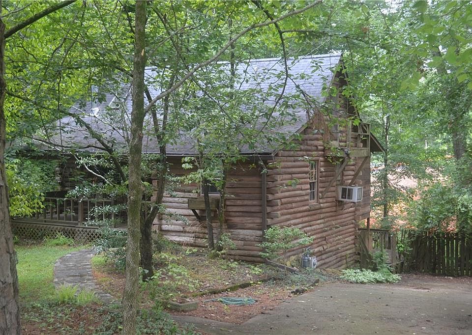 INVESTORS! Great opportunity with this adorable log home nestled on a wooded lot. Located in great area of Holly Springs with easy access to I575, Northside Cherokee Hospital , schools and shopping. With some tender loving care and the picturesque setting, this cabin-like home will feel like a vacation home all year long. Enjoy the outdoors from the front porch swing. Main level has a great room with a vaulted ceiling with sky lights, hardwood floors and a wood burning stove which flows into the spacious eating area and kitchen. Kitchen has stainless steel refrigerator and gas stainless stove. Full bath on main level. Cozy loft is perfect for a reading nook, extra sleeping space or office. Terrace level offers 2 bedrooms and full bath. Cash or conventional only. House to be sold "as is" with no Seller's Property Disclosure.