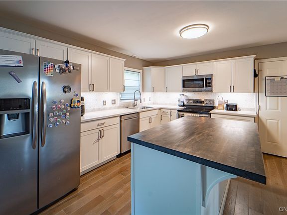 A stunning North Rome, move-in ready Colonial offers the perfect blend of classic charm & modern convenience, requiring little to no additional work before settling in! "MOVE-IN ready" are words everyone hopes to hear when hunting this housing market for "the one"! As you enter, you’re met by a pristine interior - traditional elements meet contemporary updates! Within this 1,568 sq ft home, presents 4 bedrooms, 1.5 baths and a lifestyle you won't be able to wait to come home to! Property Updates & Highlights include but are not limited to: BRAND new roof (7/23), kitchen UPDATED to include new cabinets, counters, flooring, backsplash, lighting, large island w/ butcher block (2021), replacement NY Sash windows (ALL), CENTRAL AC, NEWER front porch & sidewalk (2022), seamless gutters (2020), UPGRADED electric service (2015) PLUS additional electric upgrades (2023), (upper level of) the home features NEWER carpet, doors, trim/moldings while the lower level offers replacement luxury vinyl flooring (2021), partially finished basement (2022), vinyl siding, NEW garbage disposal (2024), private back yard wrapped in well-manicured hedges. Centrally located, and simply ... A MUST SEE!