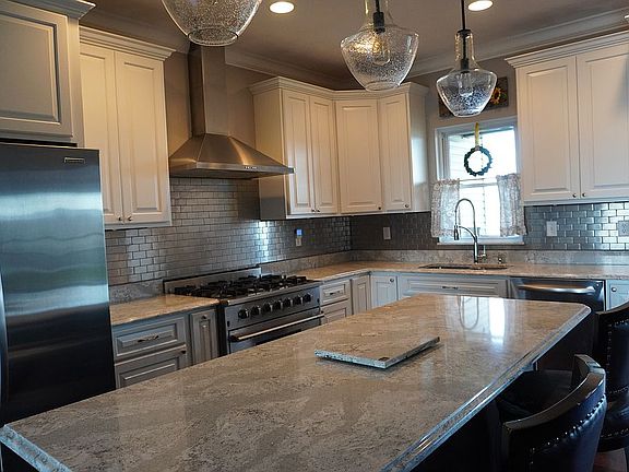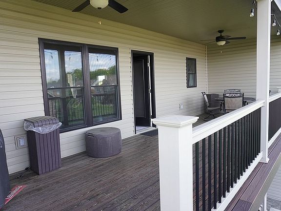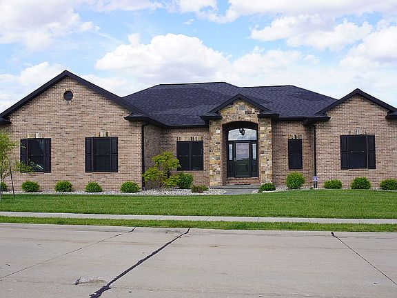 You will be amazed by the curb appeal and quality construction of this 3 sided brick custom walk-out home in highly sought after Northwinds subdivision. Entertain in open-living concept, split floor plan with more than 1850 finished square ft on main floor, 3 bedroom, 2 ½ bath. Walk through the foyer passing the custom hardwood staircase in the vaulted living room with crown molding featuring a corner gas fireplace. The first floor boasts 9 ft ceilings and hardwoods throughout, tile in bathrooms and laundry room. Extend your living space, letting the outdoors in with the huge no maintenance covered composite deck with a staircase leading to the stained and stamped concrete patio below. Beautiful and light custom kitchen is a cooks dream with high end stainless steel appliances, upgraded white maple cabinets with soft close doors, 7 ft island, quartz countertops, and stainless steel tile backsplash. Appliances include an oversized gas stove/oven, stainless steel range hood, side by side refrigerator, dishwasher and convection microwave. Half bath convenient for entertaining. Large laundry room with utility sink and cabinetry. Master bedroom is spacious with lots of light and tray ceilings. Master bath includes separate double vanities, 9x4 luxurious walk-in shower, and large walk-in closet. On the other side of the house you will find 2 bedrooms with walk-in closets and a full bath. Full 9ft basement with rough in for bathroom and bar. Large storage area for riding lawnmower with direct access to yard via double steel doors. Oversized 2 car garage with finished walls. High efficiency HVAC system and spray foam insulation. Professional landscaping and mature yard.