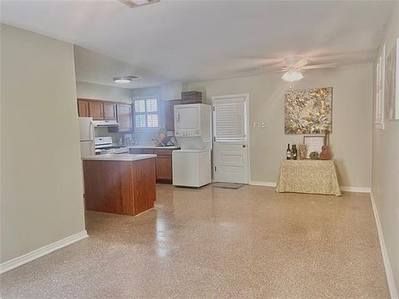 Fantastically cheerful mid century 1/2 double in great Metairie location! 2 beds/ 1 bath. Freshly painted and very clean, indestructible terrazzo flooring throughout, plantation shutters on all windows, fenced designated backyard for each tenant, covered carport parking for one parking spot, washer and dryer in unit, and outside space for storage. Quiet longterm tenant in front unit with only one shared wall between both units. Pets under 25 lbs allowed on case by case basis/ upon owner's approval. Steps from the Bonnabel parade route and a few blocks to the lake. Open your doors and windows in the evening to catch the breeze coming off the lake! Water and lawn care is an additional $50 per month & paid with monthly rent.