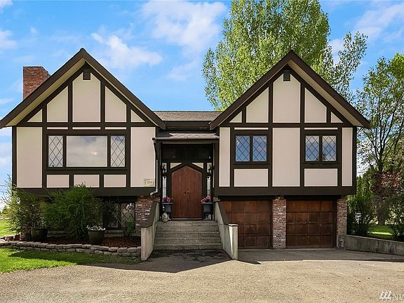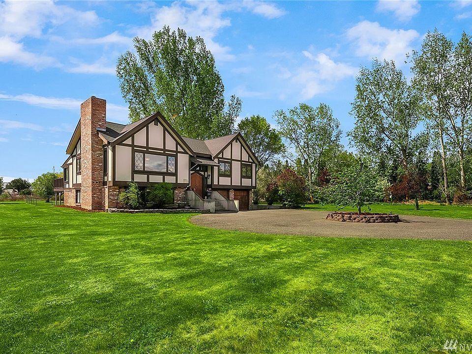 Classic Tudor country charmer located on a rare 1.77 acre lot next to city limits. This well-maintained home features hardwood floors, skylights, & sun room, with luxurious master suite, bedroom & bonus room on the main level. French doors lead to a large deck overlooking a brick patio w/hot tub. Manicured lawns w/in ground sprinklers & irrigation. Additional bedroom & bath downstairs w/an incredible game room, also piped for a fireplace. Room for a huge shop or future development potential.