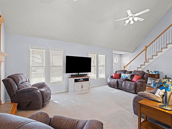 Ideal for one-level living! Primary bedroom, bathroom, and laundry all located on the main level. Front covered porch, fireplace, vaulted ceilings, sunroom, large 0.4 acre lot… this home has it all! Located in the beautiful subdivision of Hunters Ridge. Spacious living area with vaulted ceilings and a cozy fireplace. The bright and airy sunroom offers year-round enjoyment with views of the large lot, while the deck provides the ideal setting for outdoor entertaining. The primary suite features a private bathroom with jetted tub. Upstairs includes 2 more bedrooms with jack & jill bathroom. The unfinished basement is full of potential for extra living space or storage. Don’t miss your chance to own this beautiful home!