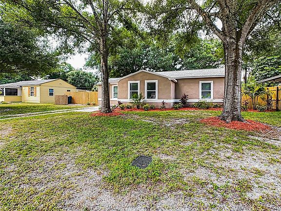 New listing in desirable WELLSWOOD! EVERYTHING in this home is NEW!!! Beautifully renovated home on large lot in the heart of Tampa. The kitchen has granite countertops, all new stainless appliances, gorgeous custom built white cabinets and exquisite tile backsplash. You will love cooking in this kitchen!! All new LED energy efficient lighting throughout entire home and new recessed lighting in kitchen and living room. Just off the living room is a flex/bonus space that would make a perfect home office. Top of the line laminate flooring throughout the entire home...NO CARPET!! Bathroom has tub/shower with new decorative tile and granite countertop with undermount sink. Storage galore in this home. Garage was converted into a spacious master bedroom. Inside laundry closet has space for a stackable washer and dryer. Roof and HVAC are NEW!!! Energy efficient double pane windows will keep your electric bill low, as well as newly blown insulation in attic and walls! Newly fenced backyard has a workshop/storage shed with electricity. There is also a concrete pad in the backyard which would be a perfect place to add a gazebo or fire pit with seating. Yard has been beautifully landscaped. There are NO CDD or HOA fees. NO Deed Restrictions. There is a voluntary civic association with a low annual fee that hosts events a few times a year. Shopping, restaurants, schools and interstate are close by for convenience and easy commute anywhere in the Tampa Area. Make this your new home today!!