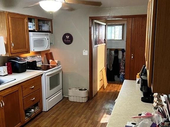 Ranch home with a fenced in backyard, 2 bedrooms, 1 bath, kitchen, and living room. The lower level includes room for storage, sump pump, a wood burning stove, and laundry room. 1 stall detached garage. New water heater 2021.