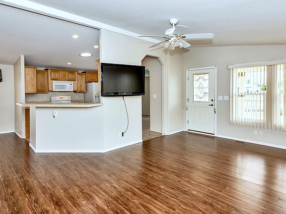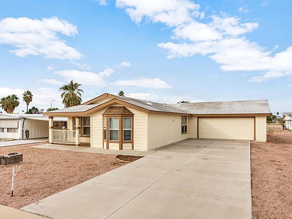 This home is a must see. It simply does not feel like the typical manufactured home! This ground set property features a very functional and open floor-plan with lots of windows and natural light. Skylights and vaulted ceilings further enhance the feeling of spaciousness. The den could easily be turned into a third bedroom. New carpet in the bedrooms. It also has an attached 40' deep garage with tons of storage space. Very close to all services and easy access to US 60. Well known Desert Sands golf course just around the corner.