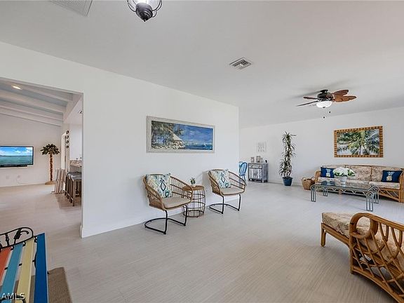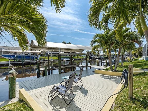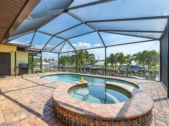 The Perfect South Facing Paradise Pool/spa boater's Home! Situated in the desirable Savona neighborhood in SE Cape Coral, this home offers No bridges and is within minutes to the Caloosahatchee River and the Gulf of Mexico. New composite dock with captain's walk and boat lift in 2019. Not in a Flood Zone! No water intrusion during Ian! 3 bedrooms, 2 bathrooms, including a guest bath that conveniently serves as a pool bath. Completely professional remodeled in 2017 with new kitchen and bathroom cabinets, matching Granite countertops throughout, whole house tiled with 5" baseboards, toilets, lighting, fixtures, water heater and AC unit. Whole house Re-plumbed in 2017. New Tile roof 2022. 34' Electric Hurricane shutter lanai area. Brick Paved Heated Salt Water Pool with Spa and automated water leveling. Laundry in residence with laundry tub. Being sold as turnkey. Close to Restaurants, shopping and entertainment. Call for your private showing today!