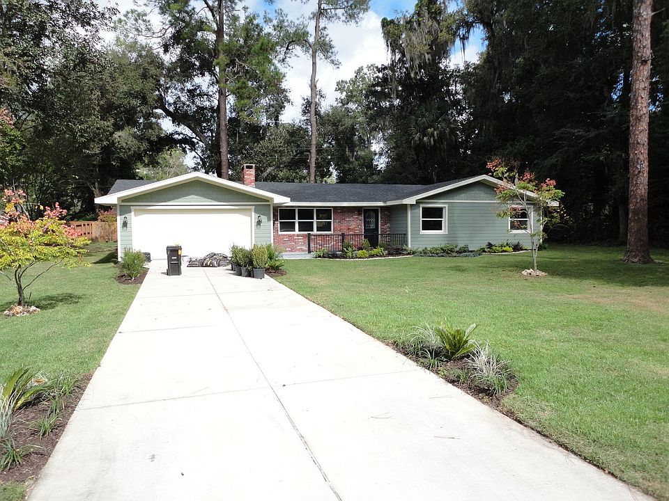 **. Take advantage of this great deal on this renovated 4 bedroom/2 bath home in the South Idylwild Area of Gainesville. Kitchen features stainless appliances with newer cabinets and granite counter tops. Laminate flooring in living areas and master bedroom, with carpet in remaining 3 bedrooms. Fireplace with new stacked stone finish. Landscaped, with outside patio featuring a built in bench. Washer and dryer hook ups only. 2 pets allowed each under 20 lbs. Yard maintenance included in rent. Estimated 1,674 square feet. Available : 9/1/2024