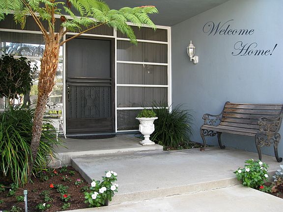 This is it! Come and fall in love with this single level pool home in Placentia. Step up the staggered front steps to a double door entry. Once you enter notice the expansive wall of slider doors provides views of the pool and outdoor entertaining space. The living room has neutral color tile, new paint, gas fireplace, ceiling fan and recessed lighting. The kitchen has granite counter tops, wood flooring, a new electric cook top (gas line available) as well as a kitchen island overlooking into the family room. Plenty of storage and pass through counters into the adjoining spacious dining area. The family room has a privacy window, slider door leading to an outdoor cozy covered porch. This floor plan offers the sleeping rooms on the opposite side of the living area. The first two bedrooms have wood flooring, wood shutters, ceiling fans and mirrored closet doors. The main bath has new flooring and new shower glass doors. The master bedroom has wood flooring, recessed lighting and access to the pool. The fourth bedroom has had a wall removed making an en-suite to the master bedroom. The master bath has been recently remodeled from floor to ceiling. A clever bathroom access for pool guest. Solar panels on lease from Vivint.solar, extended driveway for extra parking, water softener, newer windows and well maintained. New cement with proper drainage around pool and patio. Gas BBQ, vinyl fencing and vinyl awning for privacy and comfort while enjoying the refreshing pool.