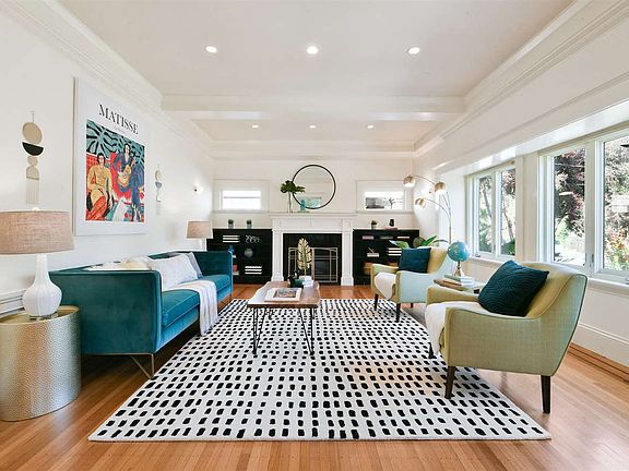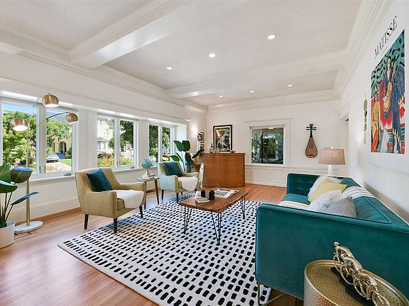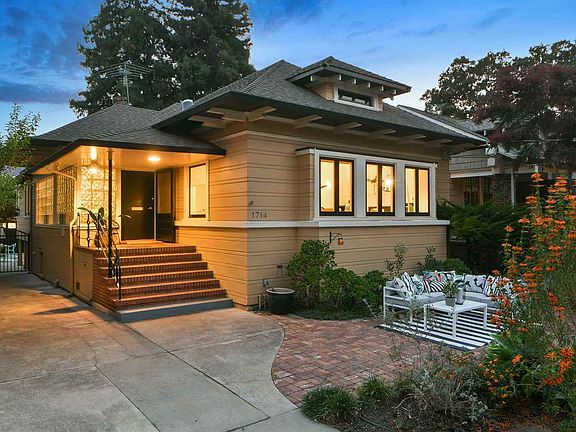 In the heart of Alameda's Bronze Coast, 1714 San Jose blends traditional Craftsman architecture with wonderful Art Deco flair, making a distinct, rich, and uniquely versatile living experience with detached studio guest cottage. Expansive rooms feature hardwood floors, soaring beamed and coved ceilings with crown moldings, updated chef's kitchen with dining nook, formal dining room, modern baths, sun tunnels, and three bedrooms on one level. A deep back yard with multiple seating areas is perfect for entertaining and features a charming urban garden. Behind the home also is a detached studio guest cottage with kitchenette and full bath, and ample tandem off-street parking runs along the side of the home.