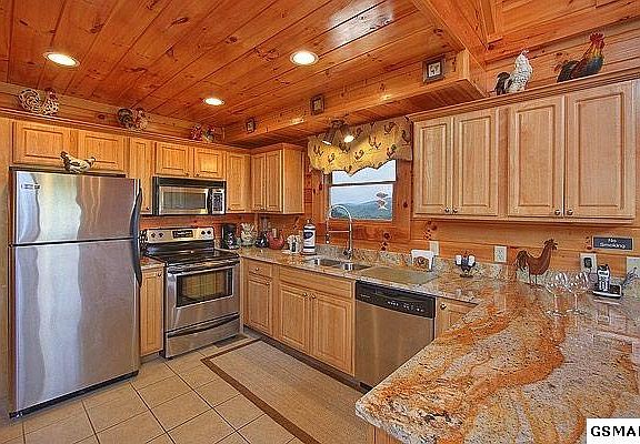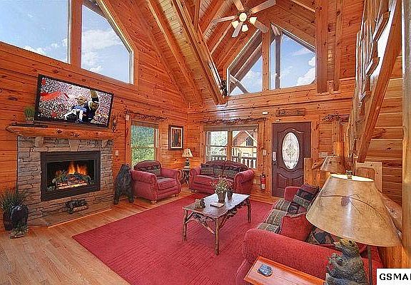 Very nice 5 bedroom, 4 bath cabin in Covered Bridge Resort. In a very nice log cabin community convenient to the Parkway in Pigeon Forge and Wears Valley. Features include an open floor plan on the main level, large master suite, 2 fireplaces, cathedral ceilings, rec room with a foosball table, hot tub with privacy, huge decks, and a very nice mountain view! Comes furnished. Sleeps 14 on overnight rental. Produces great income! Offered at a great price!