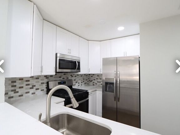 Sleek modern finishesBrand new bathroomFrench door refrigeratorMarble tileNew kitchenMosaic backsplashGas stove
